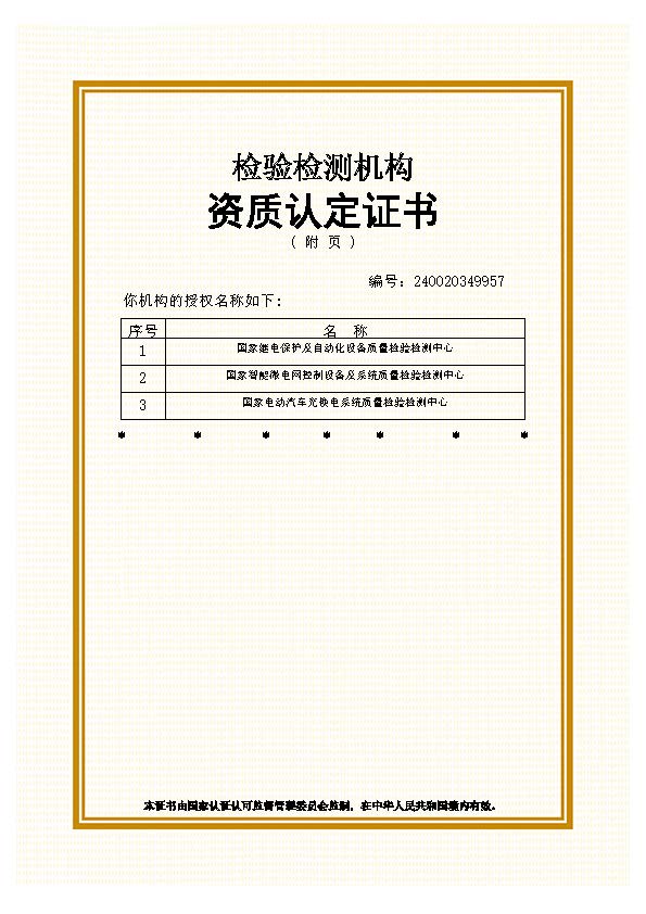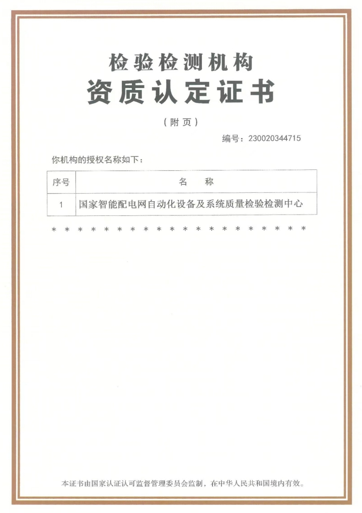 • 国家智能配电网自动化设备及系统质量检验检测中心