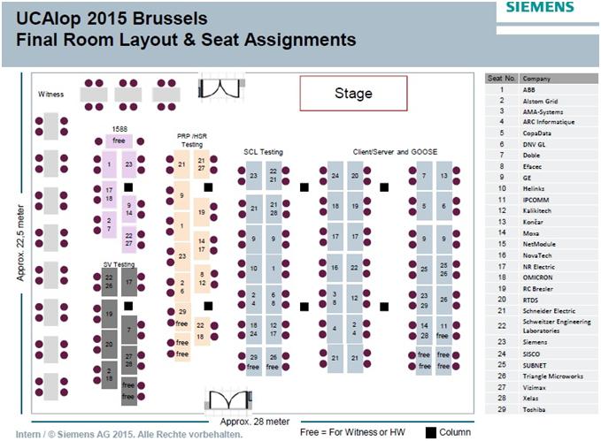 本次大会测试项目总体分为SV、GOOSE/client/server、PTP、HSR/PRP、SCL等5个小组,近600平米的大厅座无虚席。UCA协会作为组织单位,做了充分的准备工作,细致到每一个交换机、每一个插座、每一台设备的功耗,保证了整个互操作活动能够顺利启动。